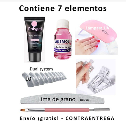 El PolyGel™ es una solución revolucionaria para esculpir extensiones de uñas, sin mezclas químicas ni tóxicas. Resultado estético y natural. Con nuestro kit, tendrás todo lo necesario para una manicura profesional en la comodidad de tu hogar. 😍